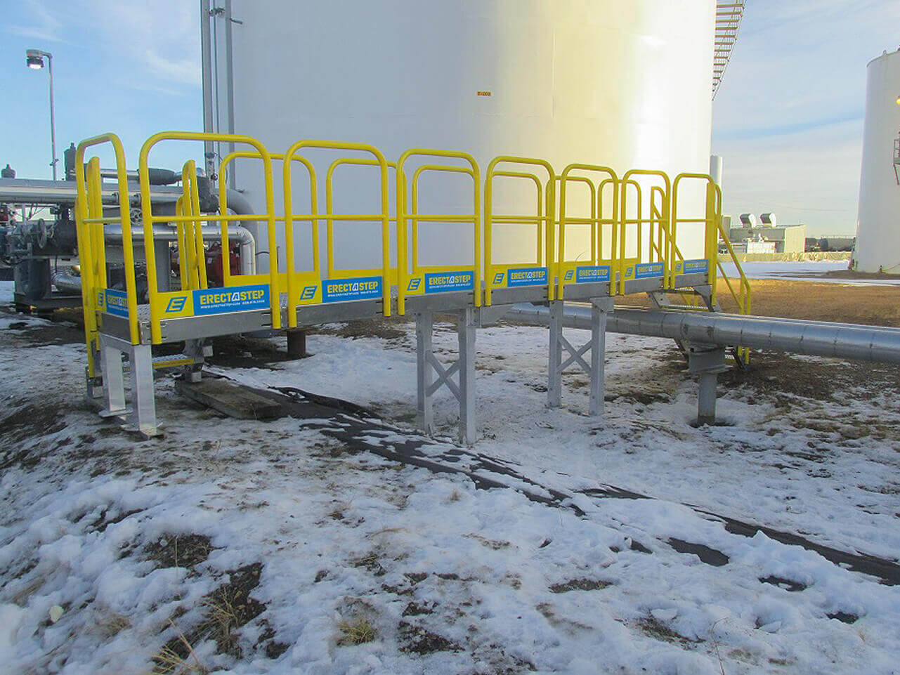 With ErectaStep’s modular stairs, it’s a quick and cost-effective solution for tank farm stairs, silo access and getting over spill containment berms. The pre-engineered components are in stock and ready to be shipped, enabling quick delivery and installation. Many of our configurations for accessing tanks or silos ship the next day and are installed in under a day without requiring costly engineering, special tools, or welding.