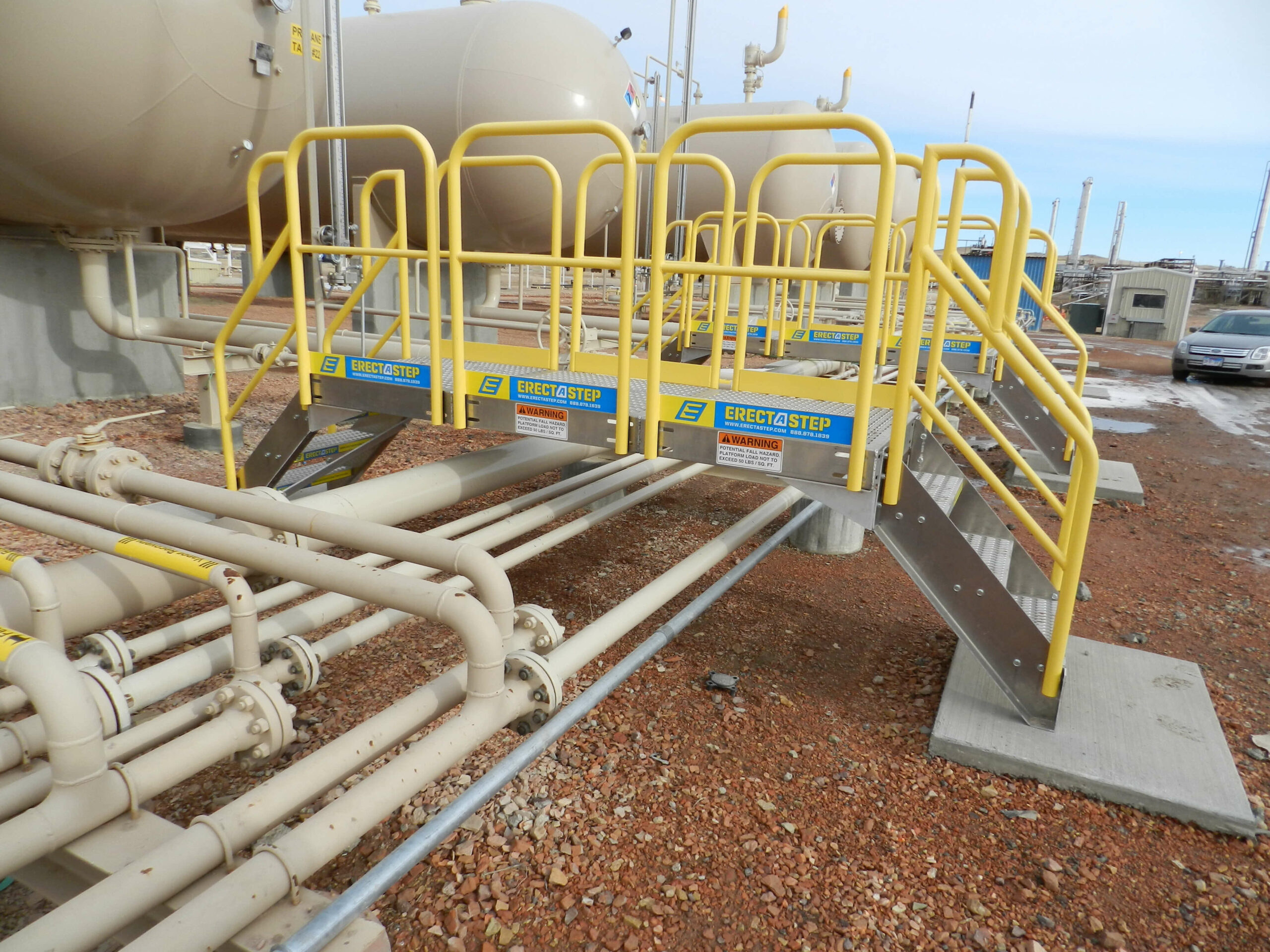 ErectaStep’s pipe crossover installation at Colonial Pipe’s tank farm giving workers access over piping.